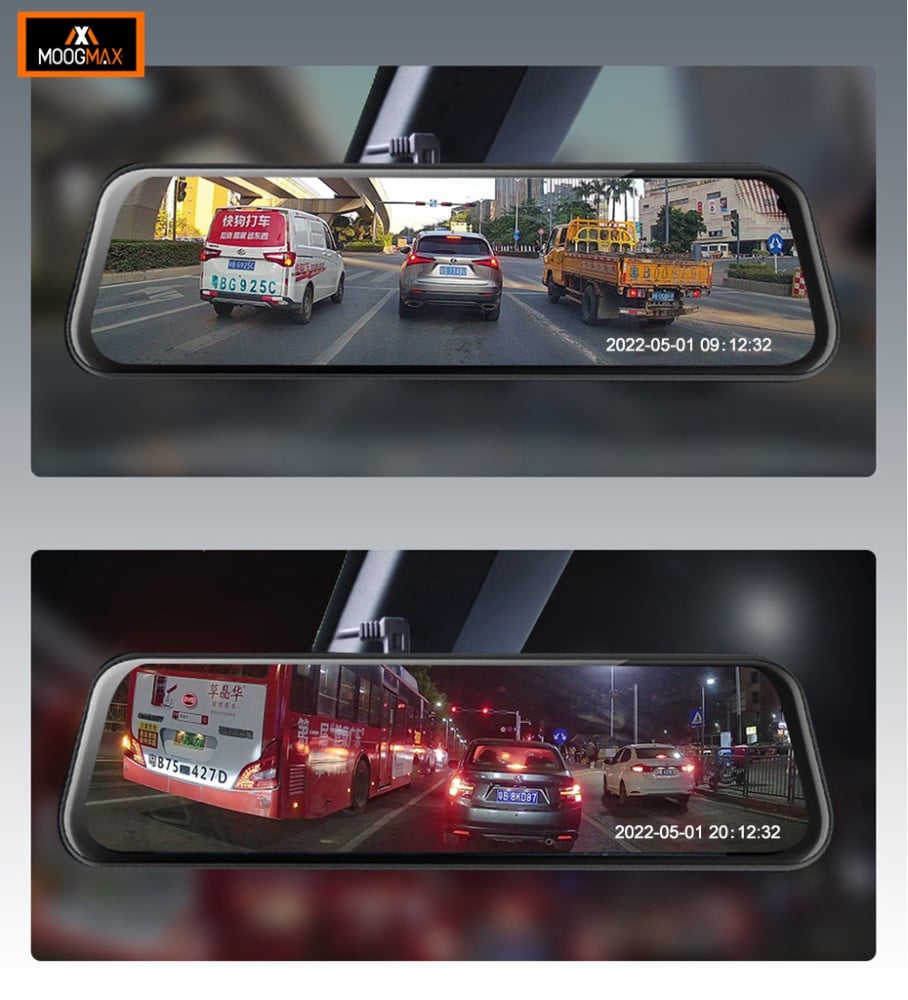 الشاشة: تتميز هذه الداش كام بشاشة واسعة بحجم 9.66 بوصة، مما يوفر تجربة مشاهدة واضحة وغامرة، تتيح لك رصد الطريق بسهولة. سواء كنت تسير في شوارع المدينة المزدحمة أو تقوم برحلة طويلة، تضمن الشاشة الواسعة للكاميرا رؤية مثالية.